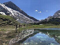 With climate change and melting glaciers, water volumes are at risk of decreasing in the long term, particularly in summer. Many small streams merge into picturesque lakes: alongside the famous Lake Oeschinen are the beautiful Arveseeli on the Spittelmatte, the Tälliseewli above Inner Üschine, and the Muggeseeli at your feet. The Muggeseeli provides an important habitat for flora and fauna and is designated a municipal nature reserve.