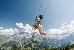 Adelboden's local mountain can be reached by cable car from the centre of the village. A giant swing by the summit is the perfect place for a unique selfie.